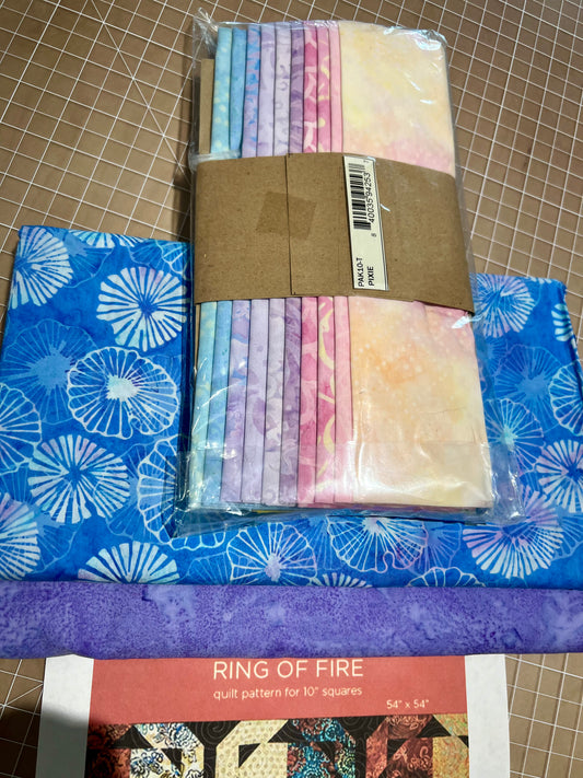 Ring of Fire Quilt Kit; Available in Pastels, Brights; and Blues; Batik fabric; 54 x 54"