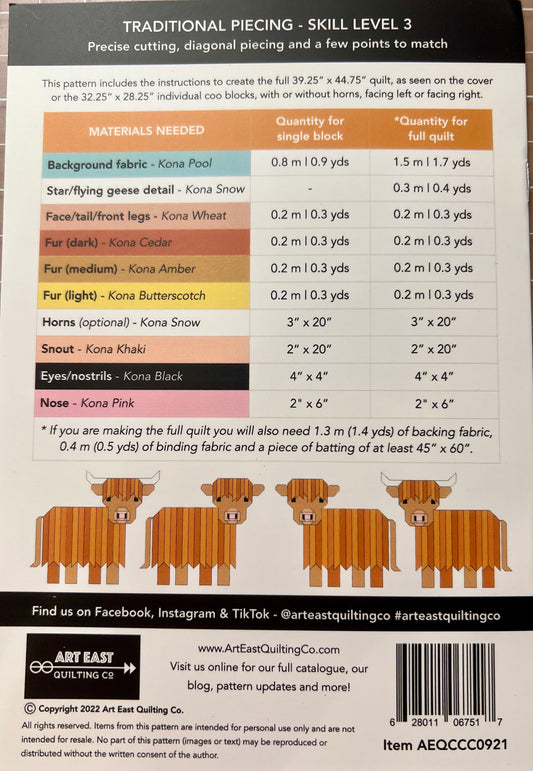 Cattle Call: A Highland Coo Quilt Pattern by Art East Quilting Co.